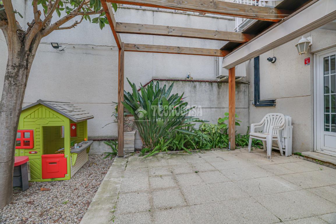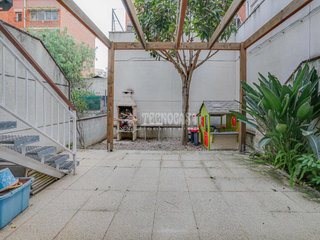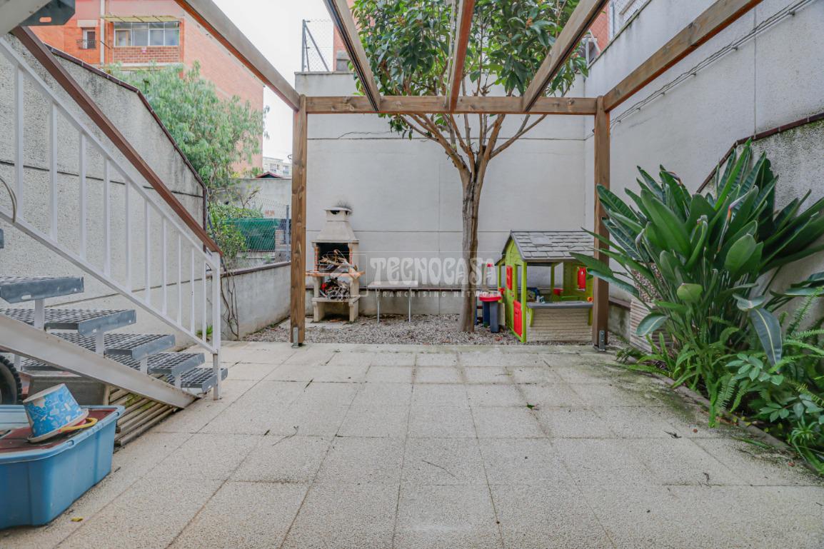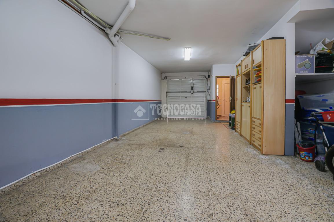 En la planta baja encontramos un recibidor que da paso a las escaleras de acceso a la primera planta y a un garaje privado para dos coches, con espacio adicional para almacenamiento. Desde el garaje se accede directamente a una terraza en patio de manzana, ideal para disfrutar de momentos al aire libre, que además cuenta con escaleras exteriores que conectan con la cocina de la primera planta.