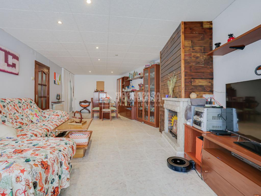Amplio, luminoso y señorial salón con zona de descanso y comedor diferenciadas. Dispone de un ventanal que deja pasar muchísima luz natural, además, cuenta con un fuego a tierra decorativo que aporta un encanto rústico y acogedor.