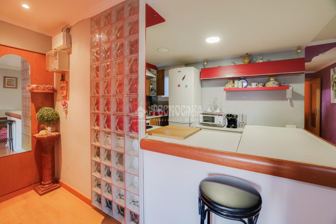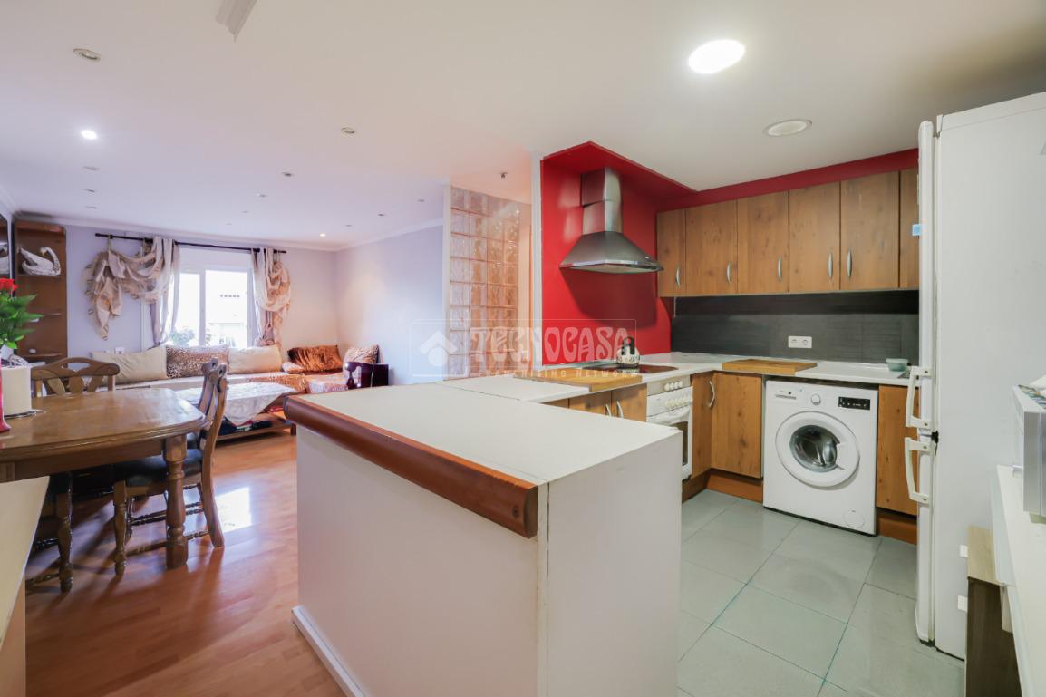 El luminoso salón-comedor con cocina americana es el lugar ideal para disfrutar de momentos en familia o con amigos. Dispone de un balcón-galería exterior que inunda el espacio de luz natural. Además, el piso dispone de dos baños completos, uno de ellos en suite, modernos y funcionales, perfectos para el día a día.