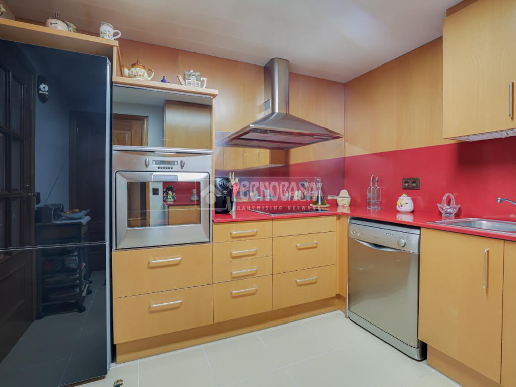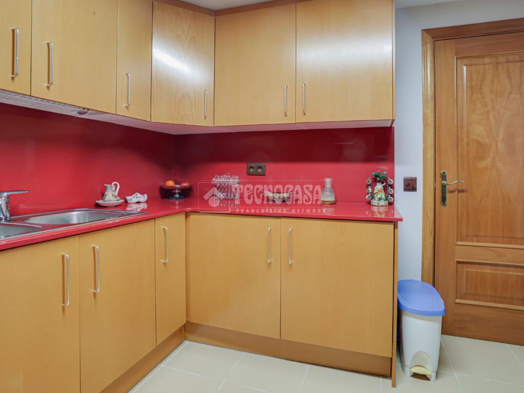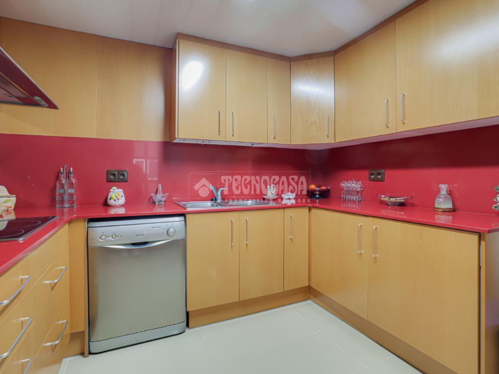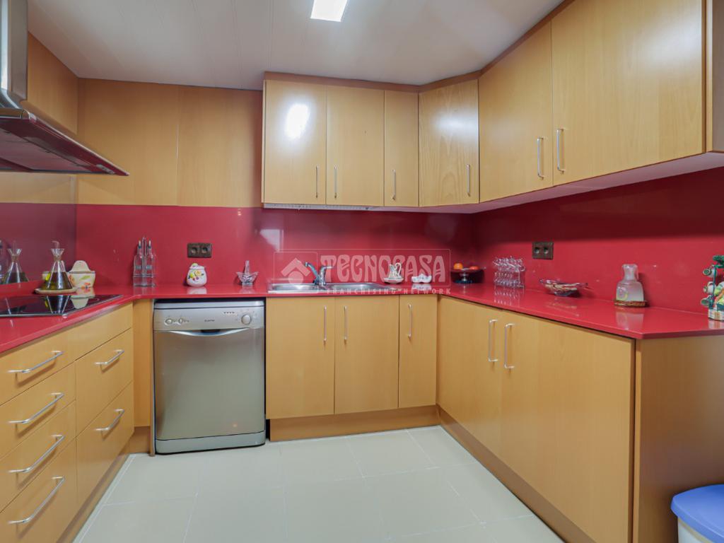 La cocina destaca por su amplitud y distribución, con suficiente espacio de trabajo y almacenamiento.