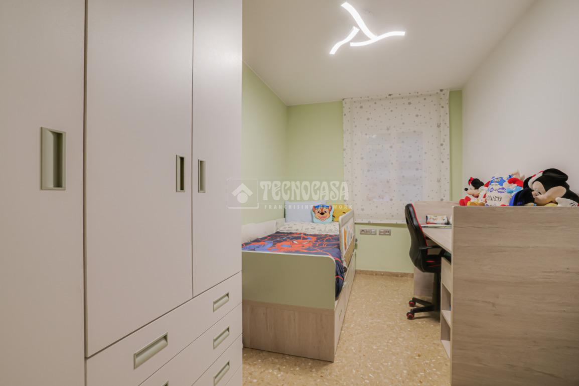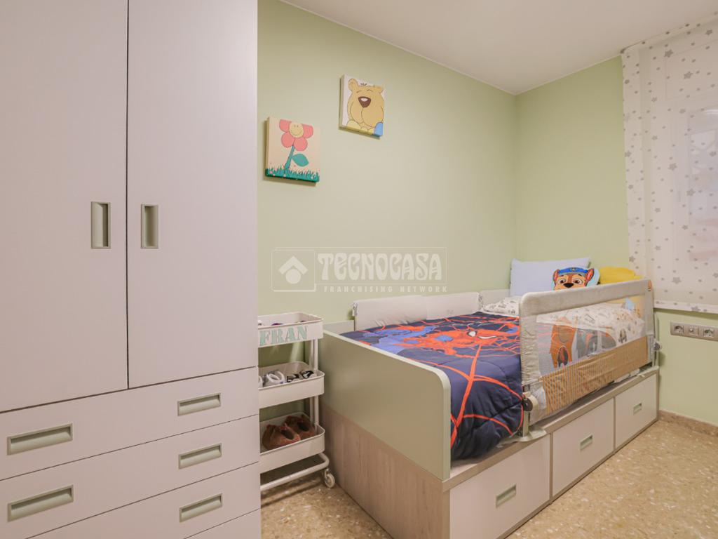 La vivienda dispone de tres dormitorios: una habitación doble amplia y confortable como dormitorio principal, y dos habitaciones individuales perfectas como dormitorios juveniles, despacho o zona polivalente. Estancias bien proporcionadas y con buena iluminación natural.